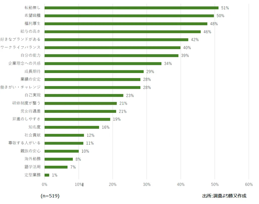 最も重視するのは「転勤がない」こと
